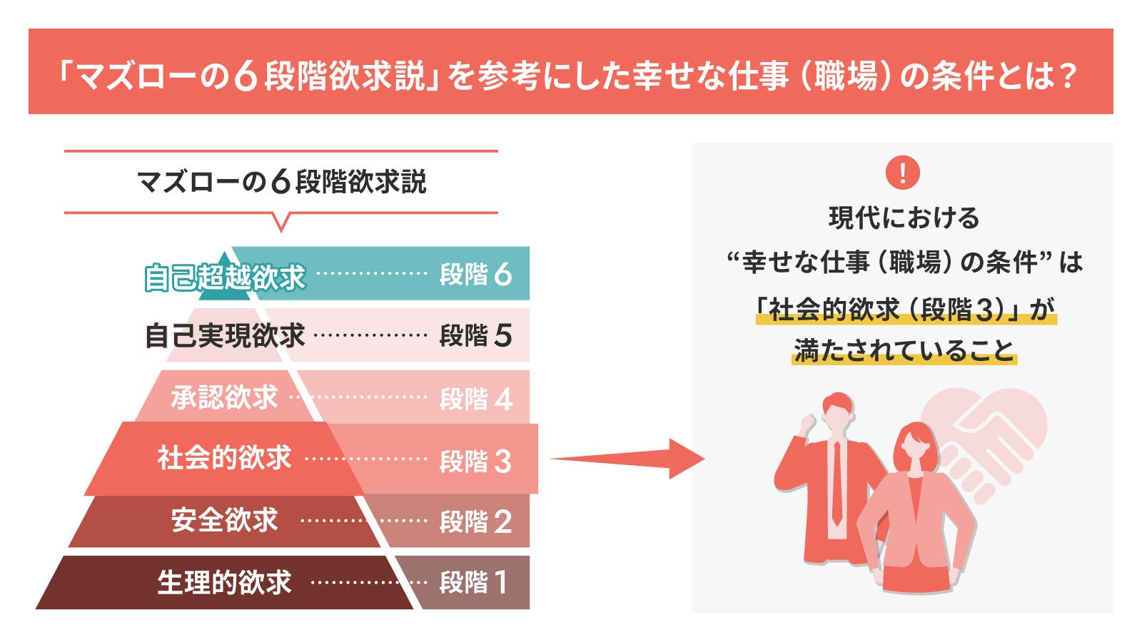 - ④ 『マズローの6段階欲求説』を元に幸せな仕事を定義すると