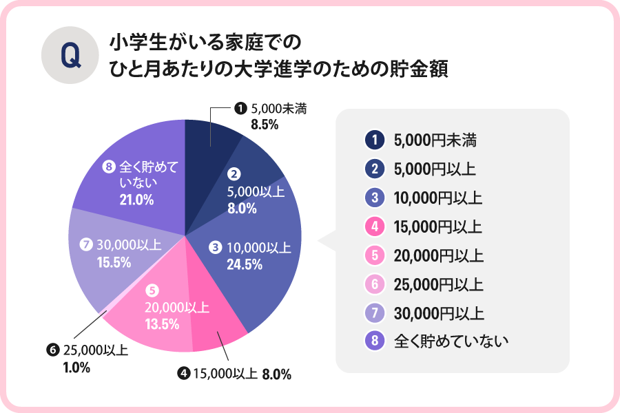 小学生がいる家庭でのひと月あたりの大学進学のための貯金額