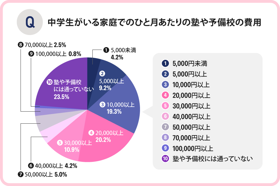 塾代が20,000円以上の家庭が過半数という結果となりました。