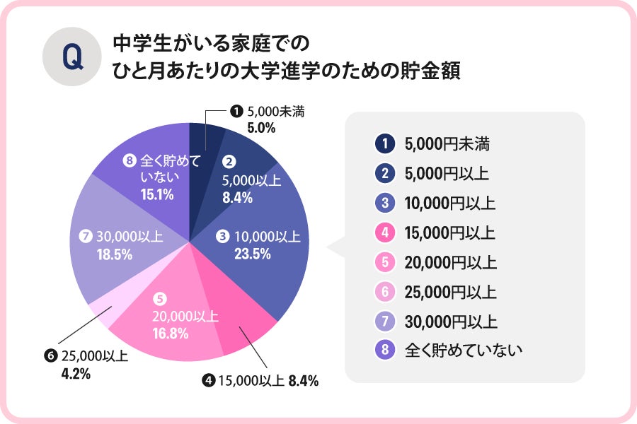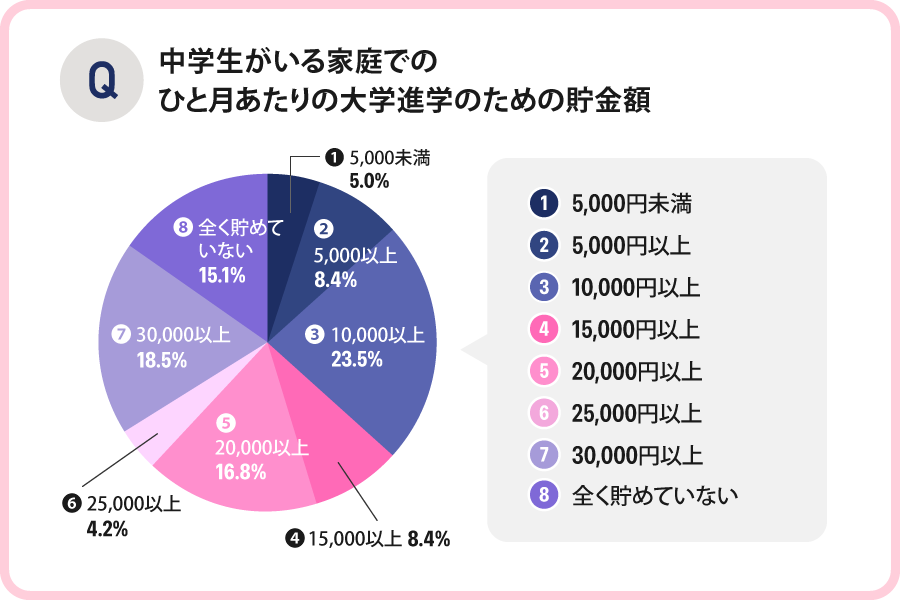 中学生がいる家庭でのひと月あたりの大学進学のための貯金額