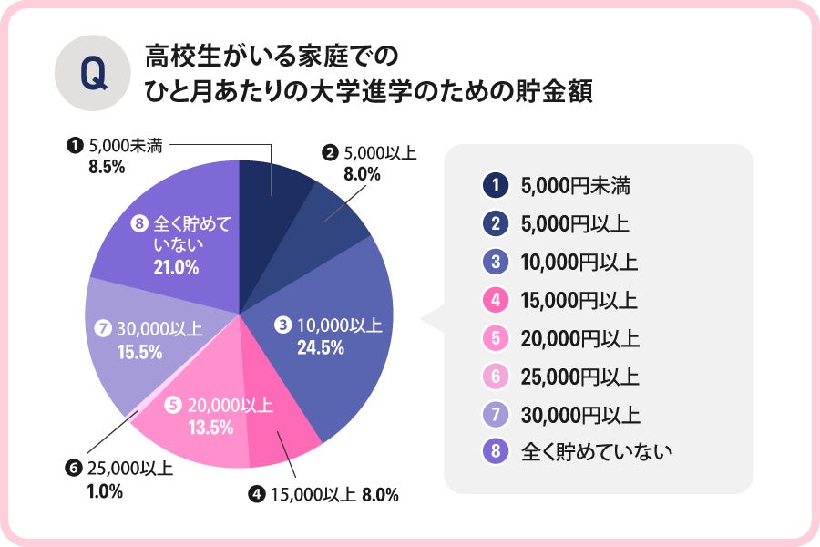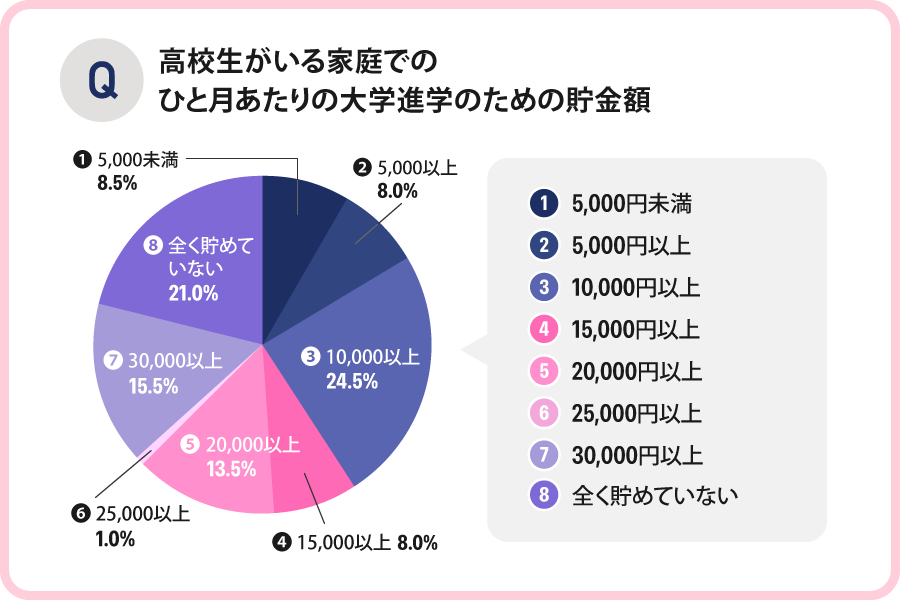 高校生がいる家庭でのひと月あたりの大学進学のための貯金額
