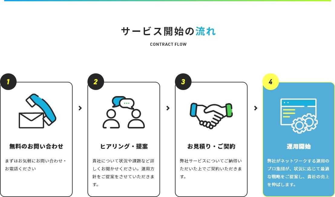 契約開始までは、お問合せから最短で翌日には開始できるものとなっております。