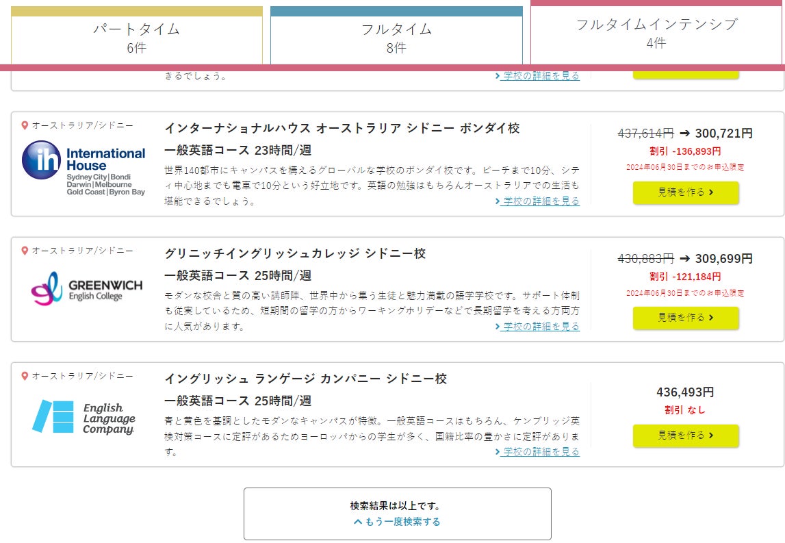 ・検索結果から留学先の各教育機関が提供する滞在先などのオプション料金を表示