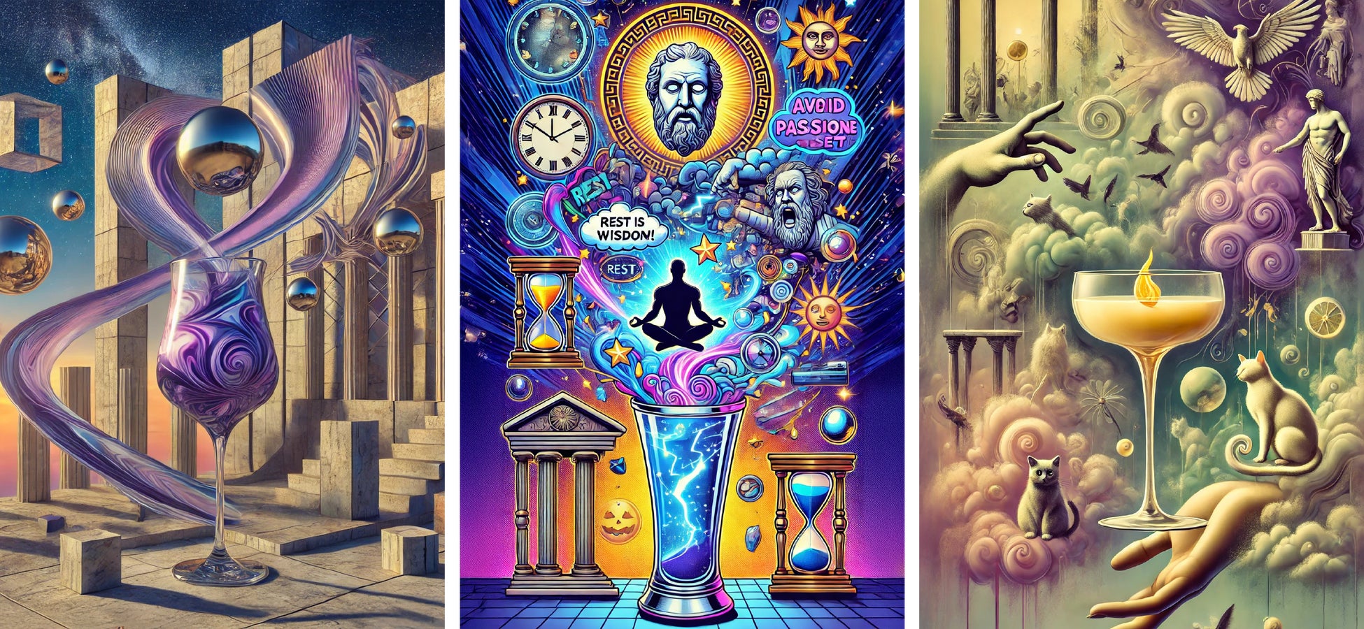 AIソクラテスとの対話を体験した後には、オリジナルのカクテルカードをプレゼント!カードには、古代ギリシャの哲学者ソクラテスと現代のあなたが対話した内容を反映したオリジナルのイラストが描かれ、「古代の知恵 × 現代の悩み」という対比がユニークなアートとなります。イラストを友人に見せて「こんな相談したんだ!」とシェアしたくなる、哲学的な問答とアートを通じて深い気づきを持ち帰る、展示イベントの思い出として唯一無二のビジュアルを手に入れる、そんな楽しみを参加者に提供いたします。