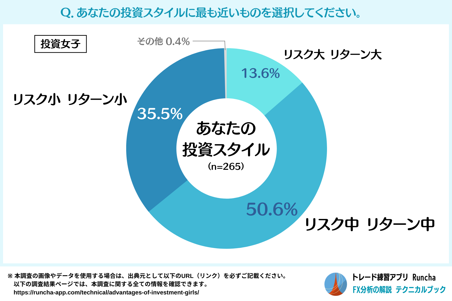 4.投資女子の50.6%が投資スタイルについて「リスク中、リターン中」と回答