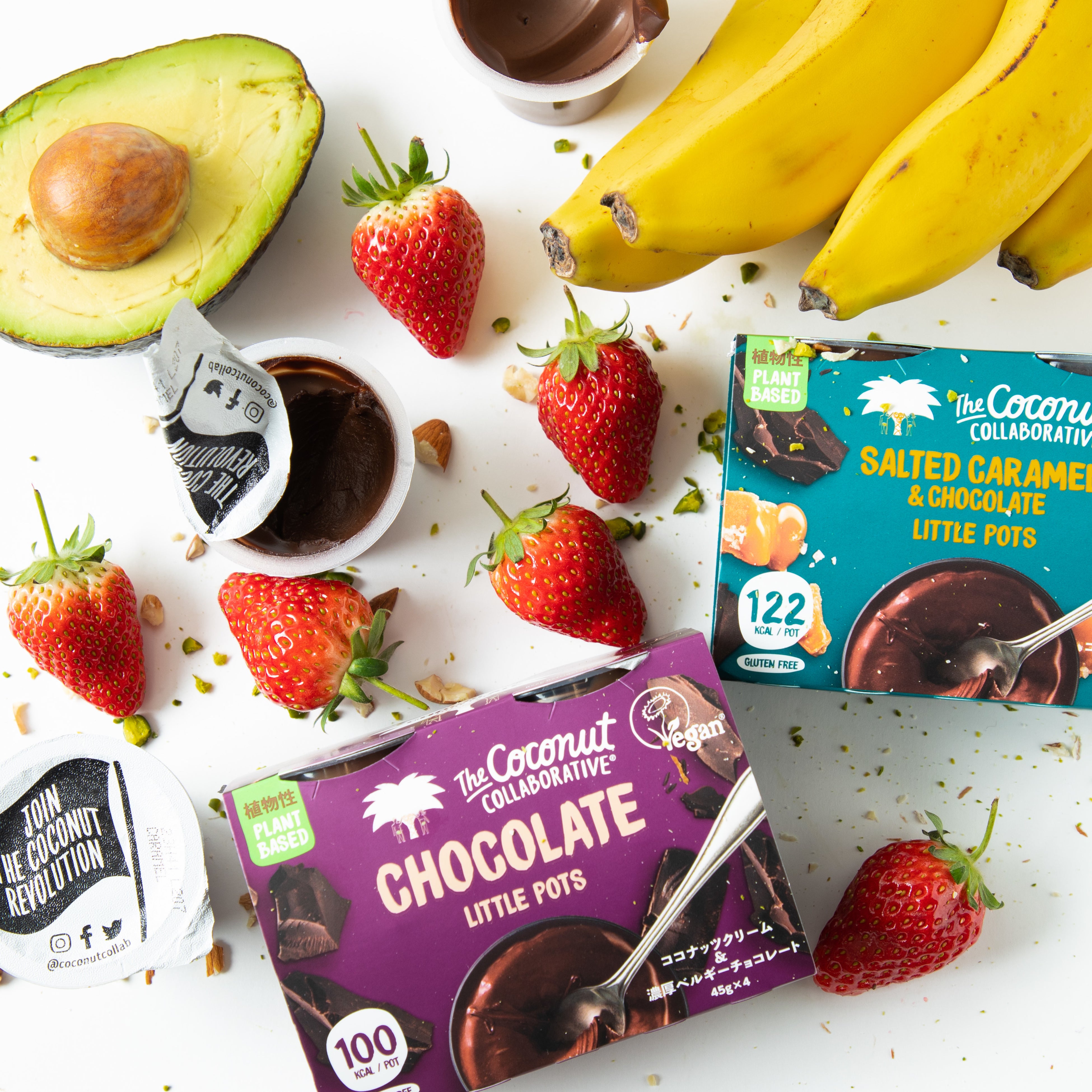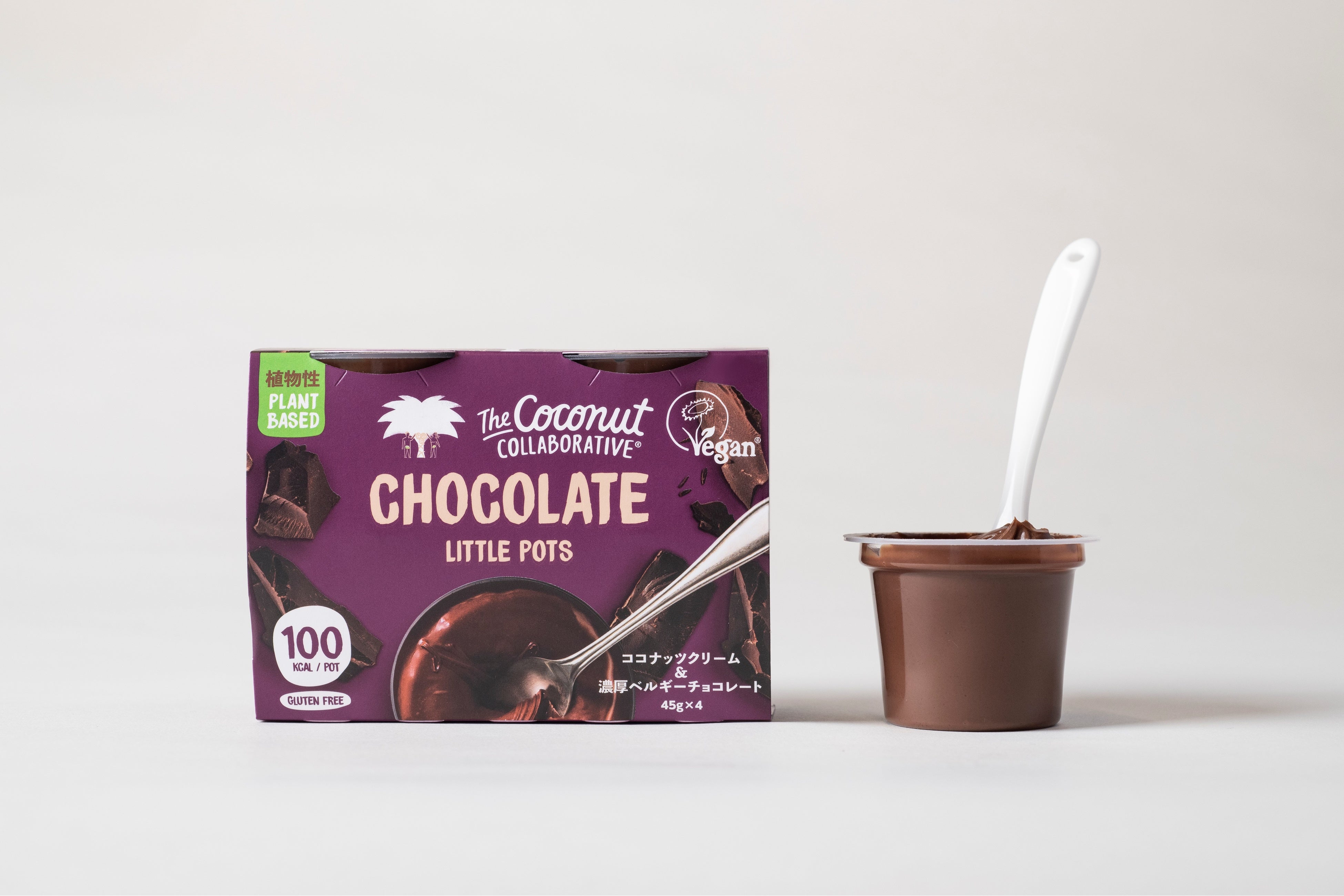 ポットの中には、とろける口どけのベルギー産チョコレートがぎゅっと詰まった、まさに小さなチョコレート天国。ココナッツクリームから作られているとは思えないほど濃厚。食後のデザートや気分転換にもぴったりの味わいとサイズ。またお気に入りのパンに塗ったり、フルーツをディップして食べるのもおススメです。