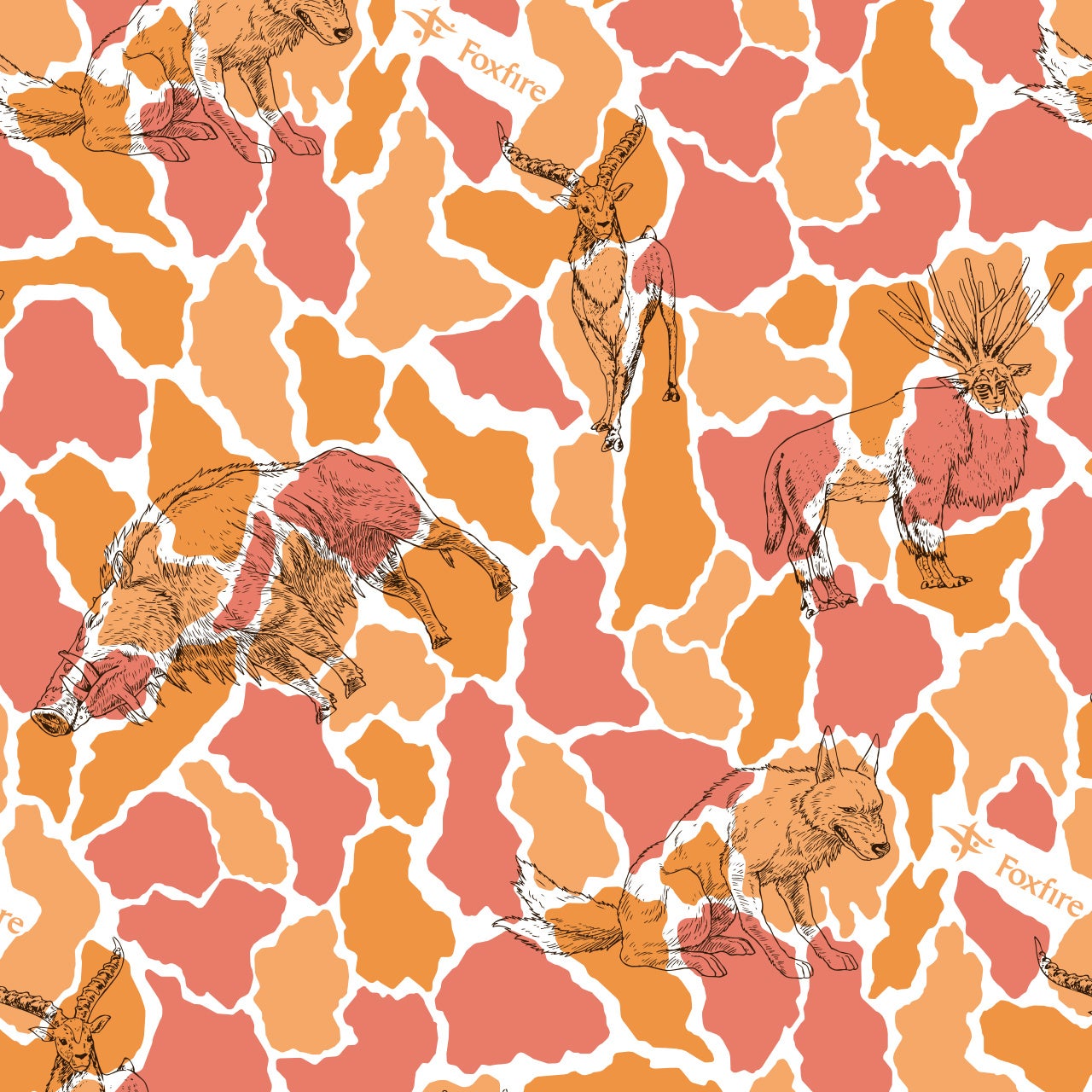 水中の魚から見えにくく、自然に溶け込むデザインとして開発された「フィッシュアイ・カモフラージュ」の中に、シシ神、モロの君、乙事主、ヤックルが潜んでいる。自然との共存を願い、クワイエットスポーツのための服をつくり続けてきたFoxfireの象徴的な柄と『もののけ姫』の世界が交わるコラボレーション仕様の特別な柄です。