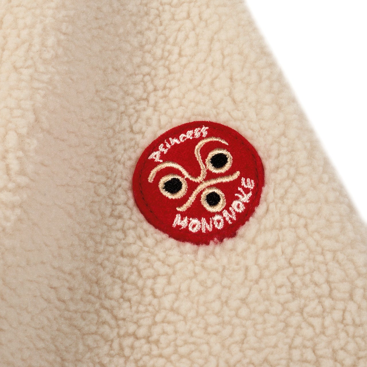 ジャケットやプルオーバーの左肩、「サンキャップ」にワンポイントとしてあしらわれた赤いワッペンは、サンが着用する土面をモチーフにしています。