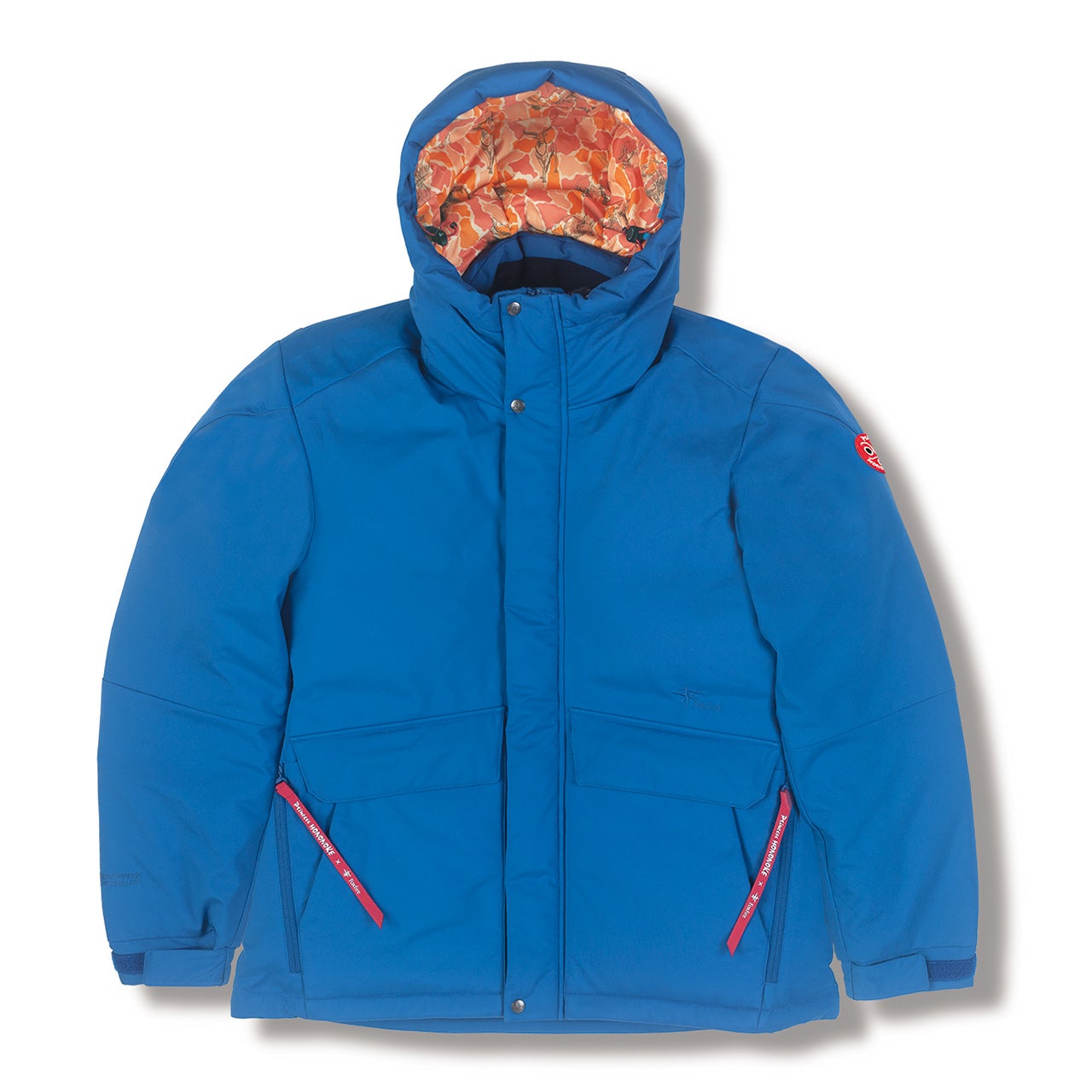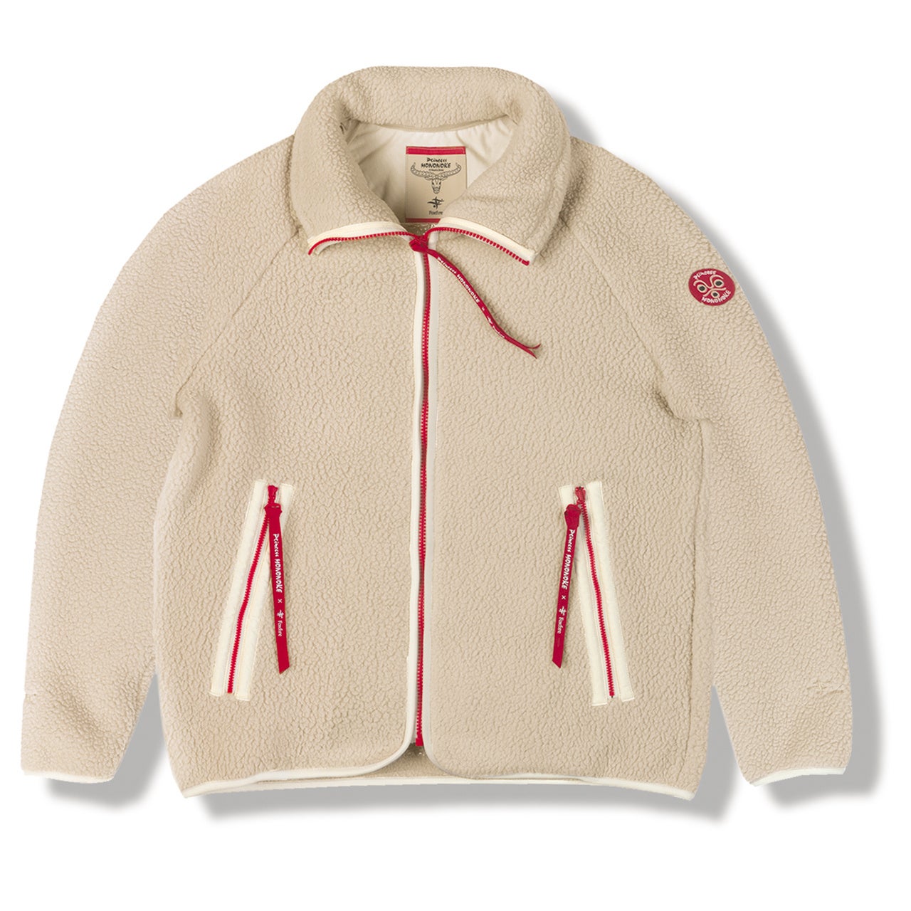 「Princess MONONOKE」とFoxfireのダブルネームが並ぶファスナーの引手は、ブルーやベージュのジャケットに合う赤と白の配色。引手の長さは、グローブをしたままファスナーを開けやすいように設計されています。