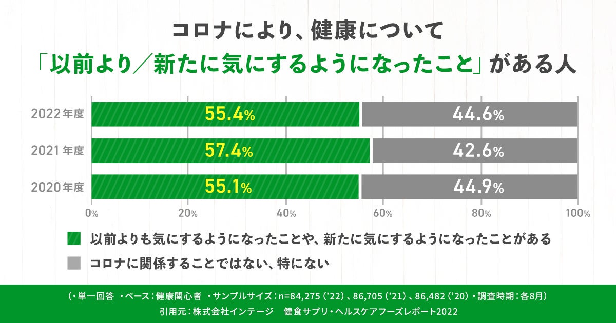 新型コロナウイルス感染症によって広がった健康意識や、ストレス・睡眠問題・運動不足などによる生活習慣病の対策など、健康食品への需要が高まっています。