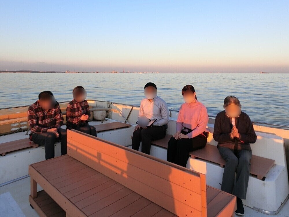 母が高齢になり遠方への墓参が難しくなってきたこと、特にコロナ禍で移動が制限されたこともあり、しばらく前から墓じまいを考えていました。子供も娘だけなので、後々の心配が無く、海を向けばいつでもお参りできる海洋散骨が良いのではないかと漠然と思っていました。親族間での意見の相違や、色々と迷うことがあり検討が一旦はストップしたものの、祖母の33回忌と父の7回忌が重なったことを契機に、進めることにしました。迷う原因であったお寺や役所への手続きから海洋散骨までを、一貫して依頼できることから、こちらにお願いしました。一番心配していたお寺への連絡は、はじめは恐る恐るでしたが、こちらの事情も汲んでくださり、案外すんなりご了承が得られました。仕事の都合で平日はなかなか身動きが取れませんが、墓地閉眼のための役所の手続きやお寺とのやりとりをすべて委託できたため、何度も遠方へ通うことも無く、相談を始めてから約ひと月半で散骨まで終えることができました。散骨当日は天気も大変穏やかで、二人にとってまさに良い船出になっただろうと思っています。船の中で娘夫婦とも話していたのですが、実際に散骨をしてみて、骨になって小さな壺に詰められ、冷たく暗いお墓の中に籠るより、明るくて広い大海原に還してもらう方が、ある意味自然で自由な気持ちになれるのではないか、自分もそれが良いかな、と感じています。