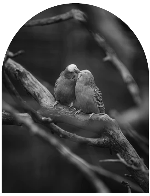 木々の高い枝の上で寄り添う可愛らしいラブバードたちは、溢れる情愛の永遠のシンボルです。