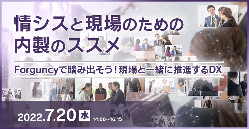 そこで本イベントでは“内製”をテーマに、現場を巻き込むシステム開発で課題解決に取り組まれている企業にご登壇いただき、内製開発に至った経緯やその効果についてお話を伺います。また、DX基盤を築くノーコードツールとして導入されている「Forguncy」の選定理由や使いどころについてもご紹介いただきます。