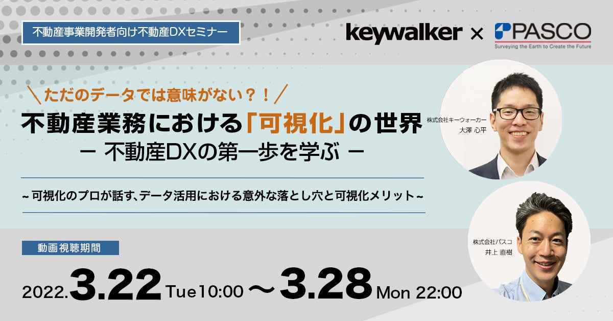【 3月22日(火)~28日(月)限定視聴 】キーウォーカー・パスコ共催不動産DXセミナー開催「不動産業務における「可視化」の世界」