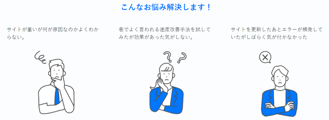 ウェブサイトの問題点を「見える化」します。ウェブサーバー上で実行されている処理を細かい単位に分けてデータの収集を行います。収集したデータをビットスターのエンジニアが解析し、分かりやすい形でレポート化します。