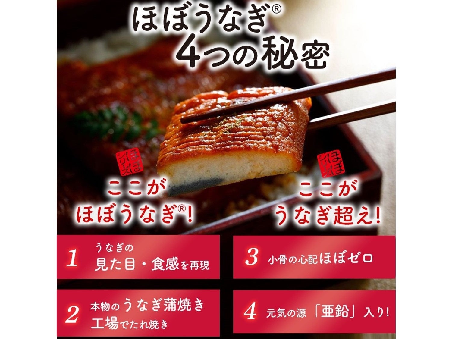 ふっくら蒸した「ほぼうなぎ®」を、静岡にある本物のうなぎ蒲焼き工場で、本物のうなぎ蒲焼きと同じたれを使用し焼き上げました。こだわりの手間暇かけた工程だからこその「テリ」「香ばしさ」。そして本物のうなぎの蒲焼きに近い、納得の味わいに仕上がりました。