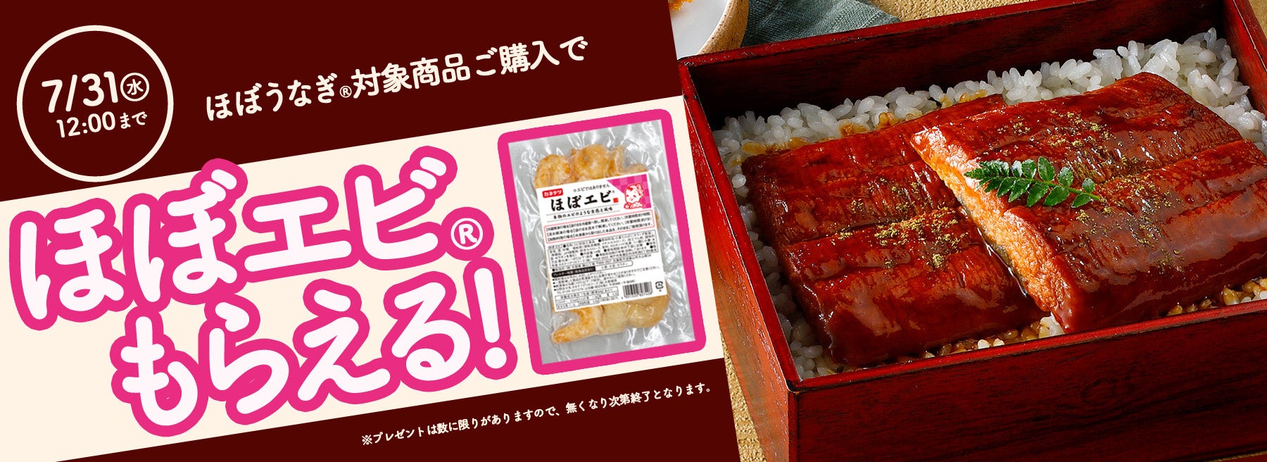 対象商品ご購入で、完全エビ・カニアレルゲンフリーで、まるで本物のような、味、見た目、食感を再現した「ほぼエビ®」を1パックプレゼントします。