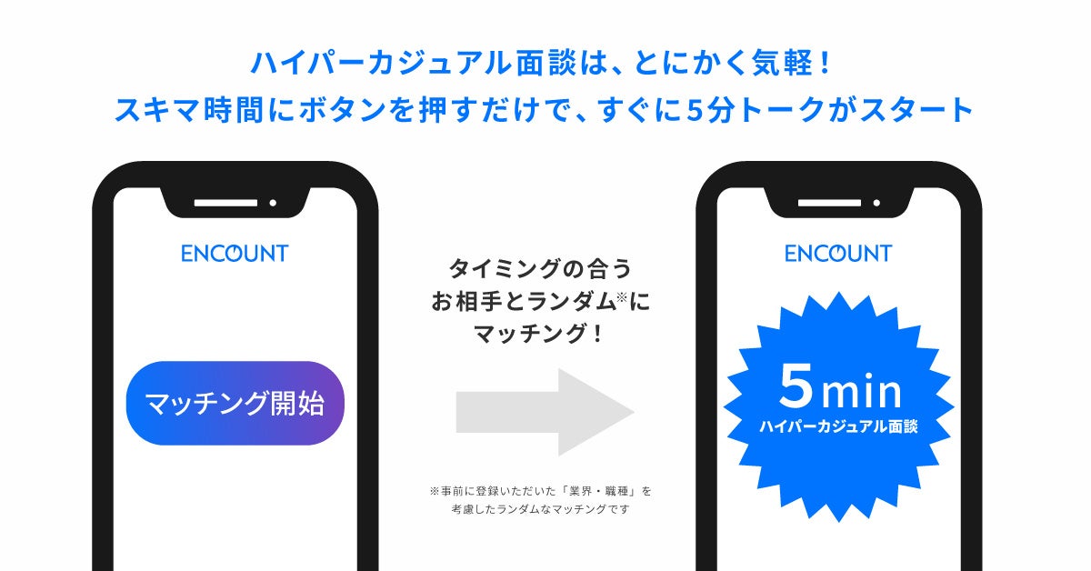 次の採用トレンドはハイパーカジュアル面談。たった5分でスキマ面談&フィーリングを確かめる採用プラットフォーム「ENCOUNT」ティザーサイトを公開【法人利用登録特典あり】