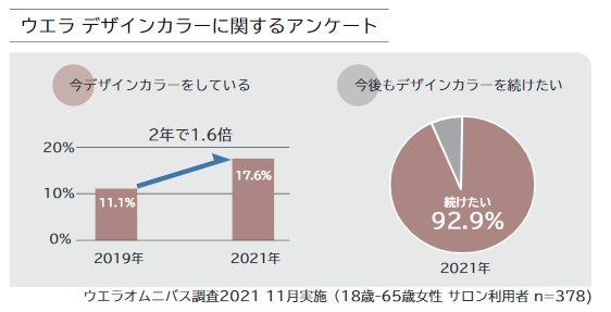 近年、女性のデザインカラーに対する意識は向上し、6人に1人がブリーチを使用したデザインカラーを楽しんでいます。そのうち、9割以上の方が今後もデザインカラーを続けたいと考えています*1 。一方で、切れ毛や枝毛の悩みは、カラーをしていない人と比較すると約2倍*2にのぼり、よりダメージケアに特化した製品へのニーズが高まっていることがうかがえます。