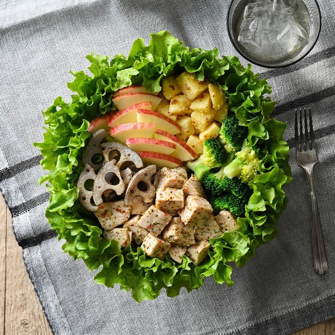 トッピング:古代れんこん/りんご/マスタードポテト/ブロッコリー/ハーブチキン