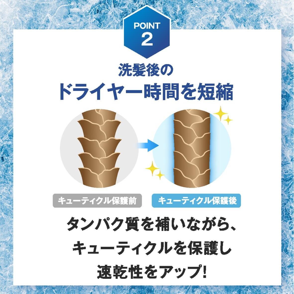 タンパク質を補いながら、キューティクルを保護し、速乾性をアップします。