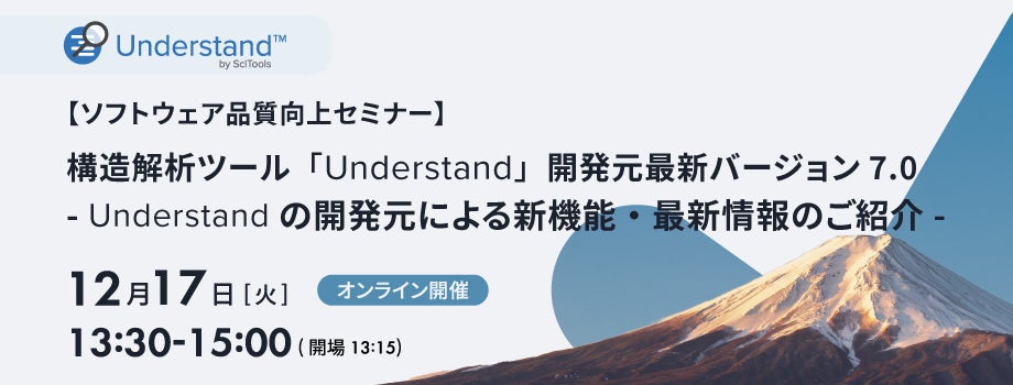 来たる12月17日(火)、ソフトウェア品質向上セミナー「構造解析ツール『Understand』開発元最新バージョン7.0紹介セミナー ~Understandの開発元による新機能・最新情報のご紹介~」を開催いたします。