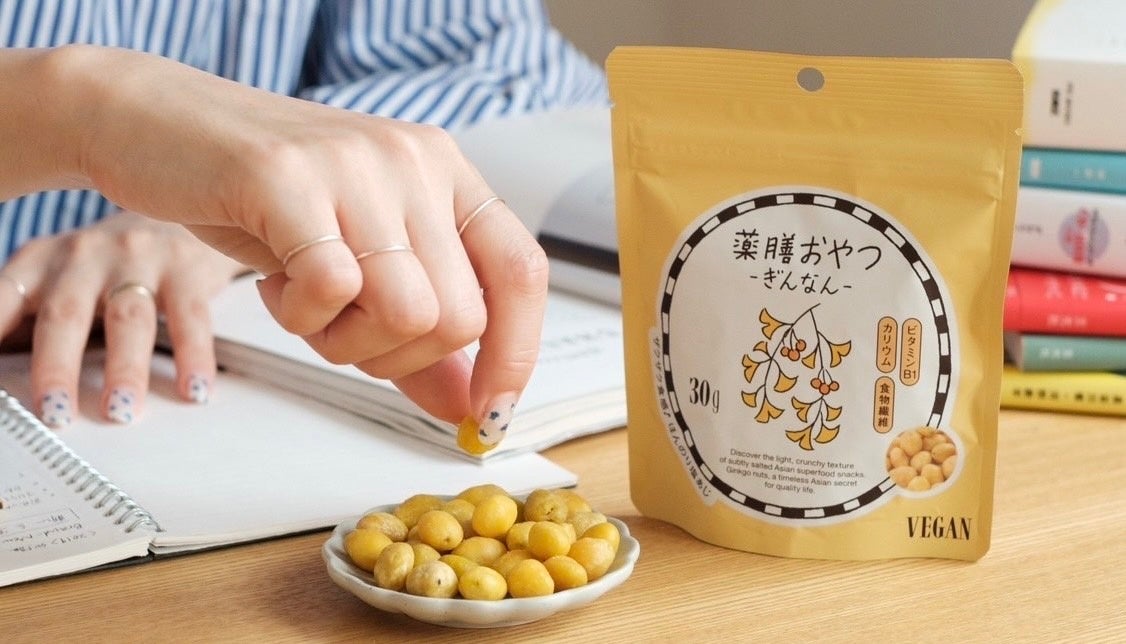 の⾃然派『薬膳おやつ』シリーズから待望の新味として、シンプルな「ぎんなん」のおやつを9