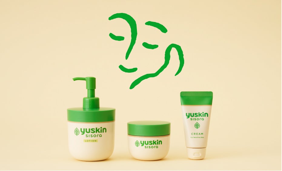 「ユースキン シソラ」は顔も含め全身にお使いいただける製品です。敏感肌の方にも安心してお使いいただけることを優しいイラストで表現しました。僕自身ヘビーユーザーで毎日シソラを使って肌ケアをしています。多くの方にお届けしたいと思ってデザインさせていただきました。