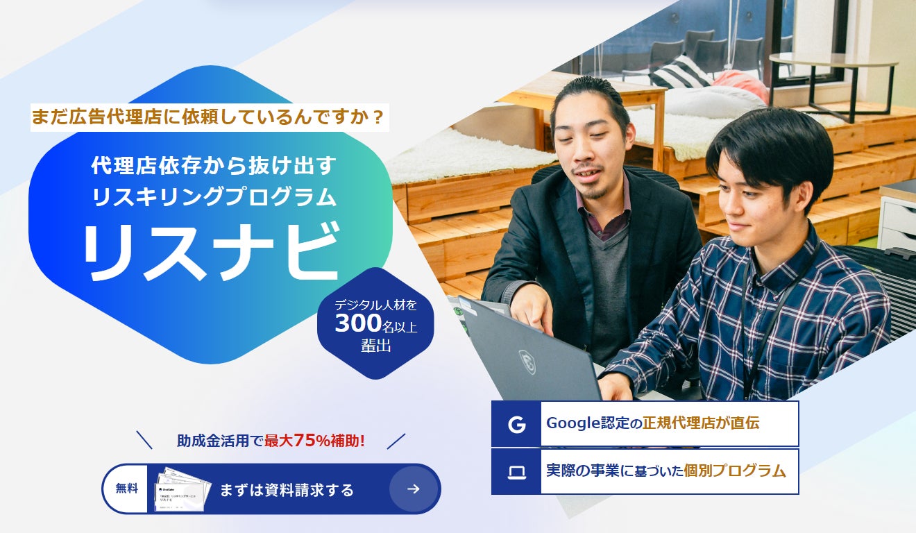 これらの課題に応えるため、多数の受賞歴を誇る広告代理店であるグラッドキューブは、企業が運用中の広告アカウントを活用したリスキリングプログラムを通じて、新サービス『リスナビ』の提供を開始することといたしました。