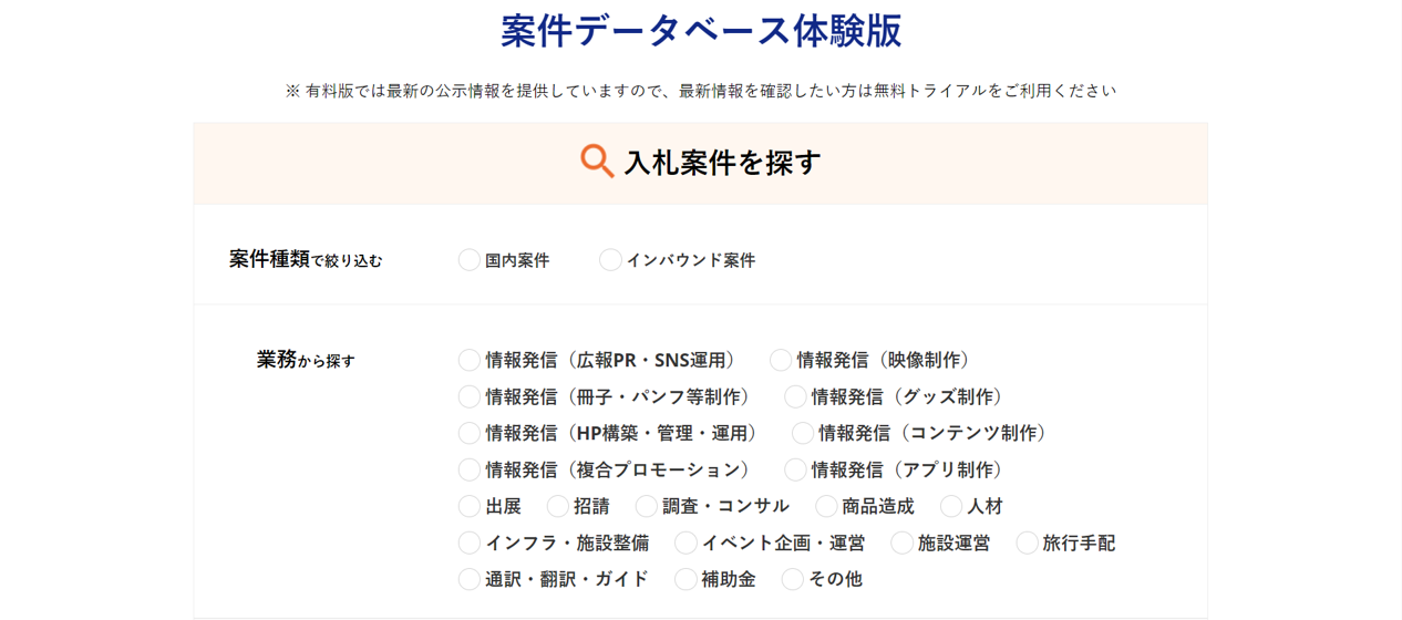 - リサーチ範囲を拡大 観光全般の公示案件を幅広くカバー