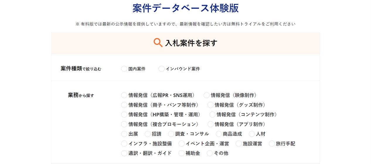 リニューアルに伴いサービス名称を「観光・インバウンド入札navi」に変更!提供する入札情報の範囲を、インバウンドだけでなく観光全般に拡大