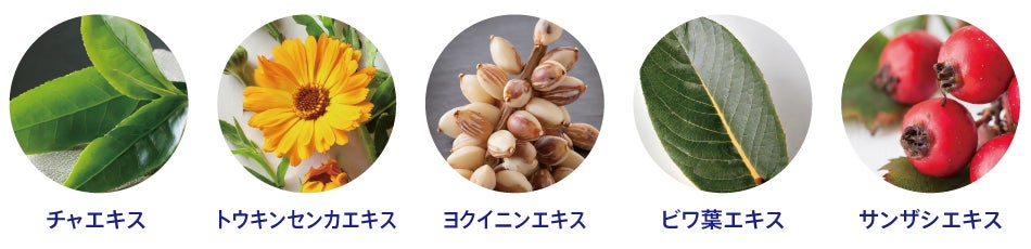 エタノール、l-メンチルグリセリルエーテル、大豆リゾリン脂質液、1,2-ペンタンジオール、濃グリセリン、クエン酸、クエン酸ナトリウム、加水分解卵殻、ビワ葉エキス、チャエキス(1)、1,3-ブチレングリコール、ヨクイニンエキス、トウキンセンカエキス、サンザシエキス、無水エタノール、精製水