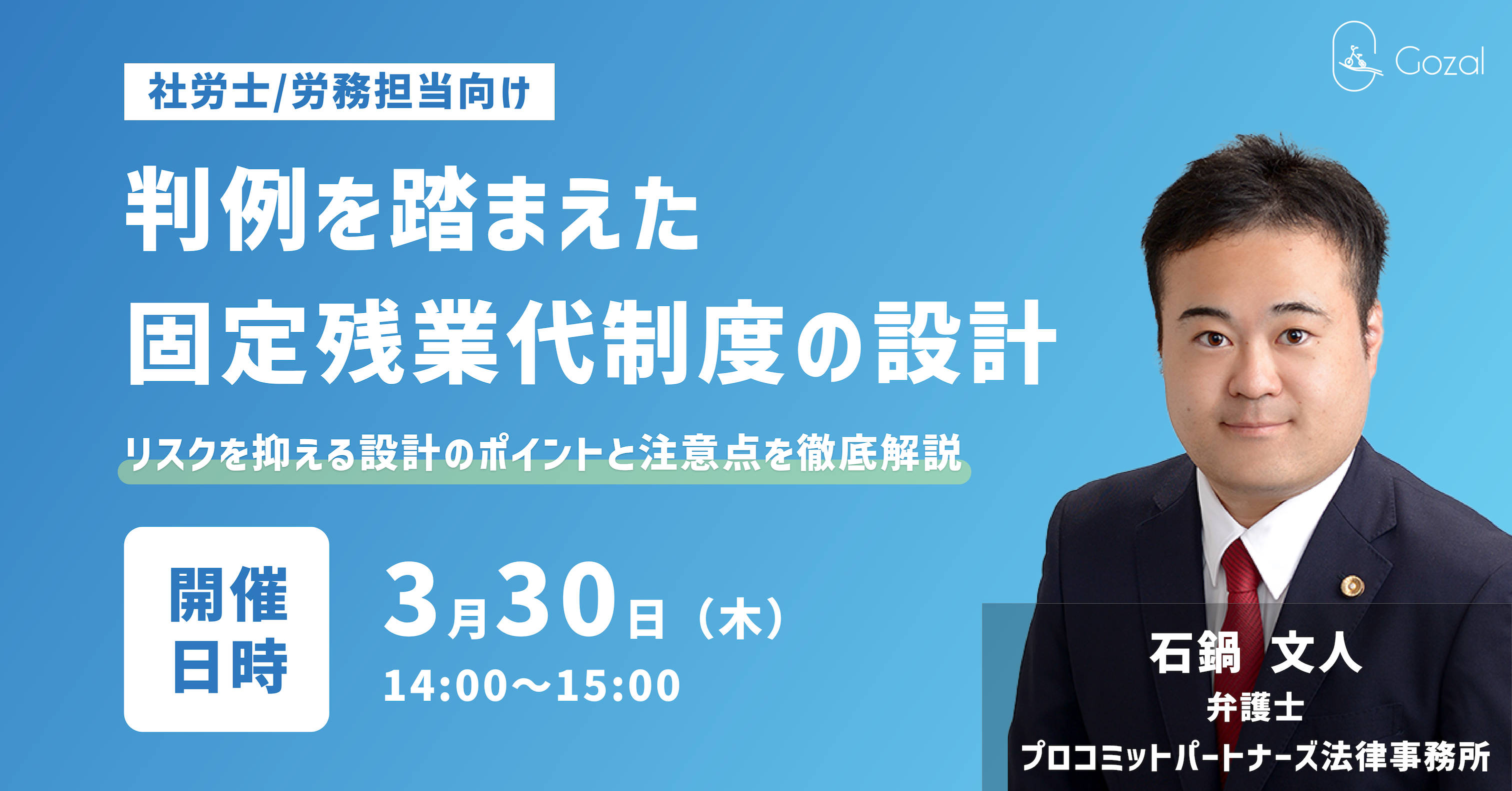 そこで今回は労働法の判例や人事労務の問題に詳しいプロコミットパートナーズ法律事務所の弁護士 石鍋 文人様を講師としてお招きし、固定残業代の設計・運用に関する注意点について解説をしていただきます。