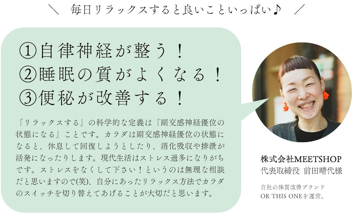 自社の体質改善ブランド「OR THIS ONE」の運営など、ヘルスケア事業を専門としている株式会社MEETSHOPの代表取締役 前田晴代様より以下のコメントをいただきました。