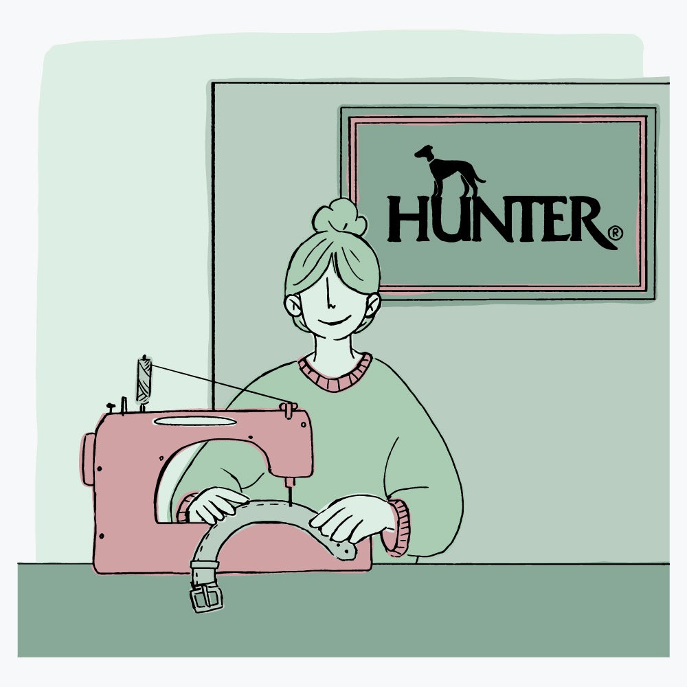 ドイツ ノルトライン=ヴェストファーレン州ビーレフェルトに拠点を置くHUNTERの革工房では、経験豊富な革の専門家によって一流のハーネス・首輪・リードが手作りされています。