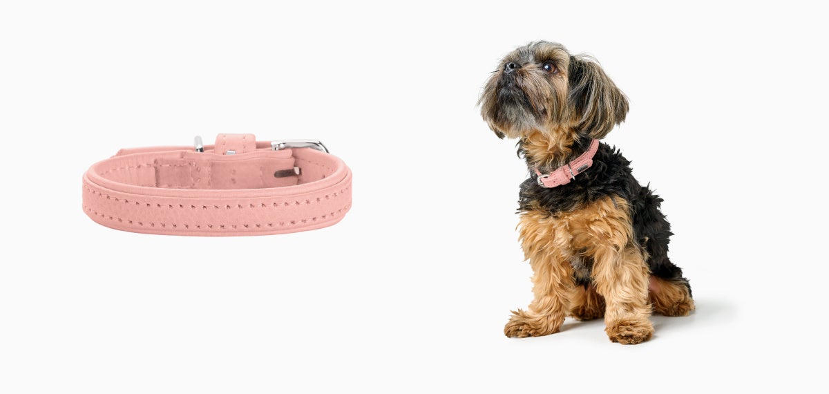 小型犬・子犬にとって最適な装着感を実現するため細心の注意が払われており、なるべく重量が出ないよう軽量な牛革で作られています。