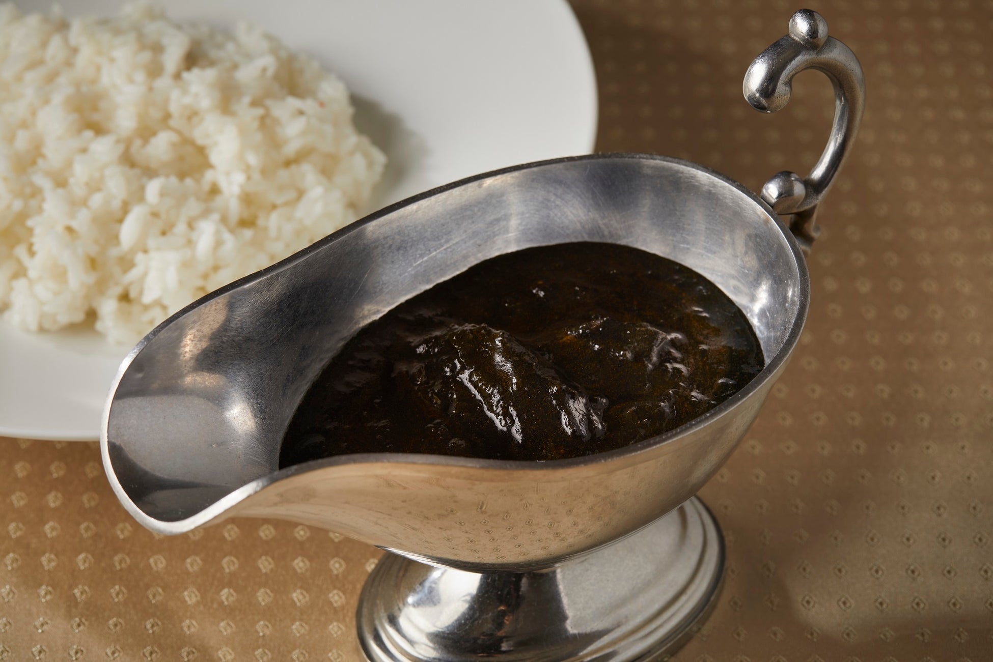 濃厚な黒いカレーをまとった具材は、食べてみないと何かわからない!