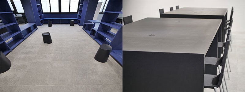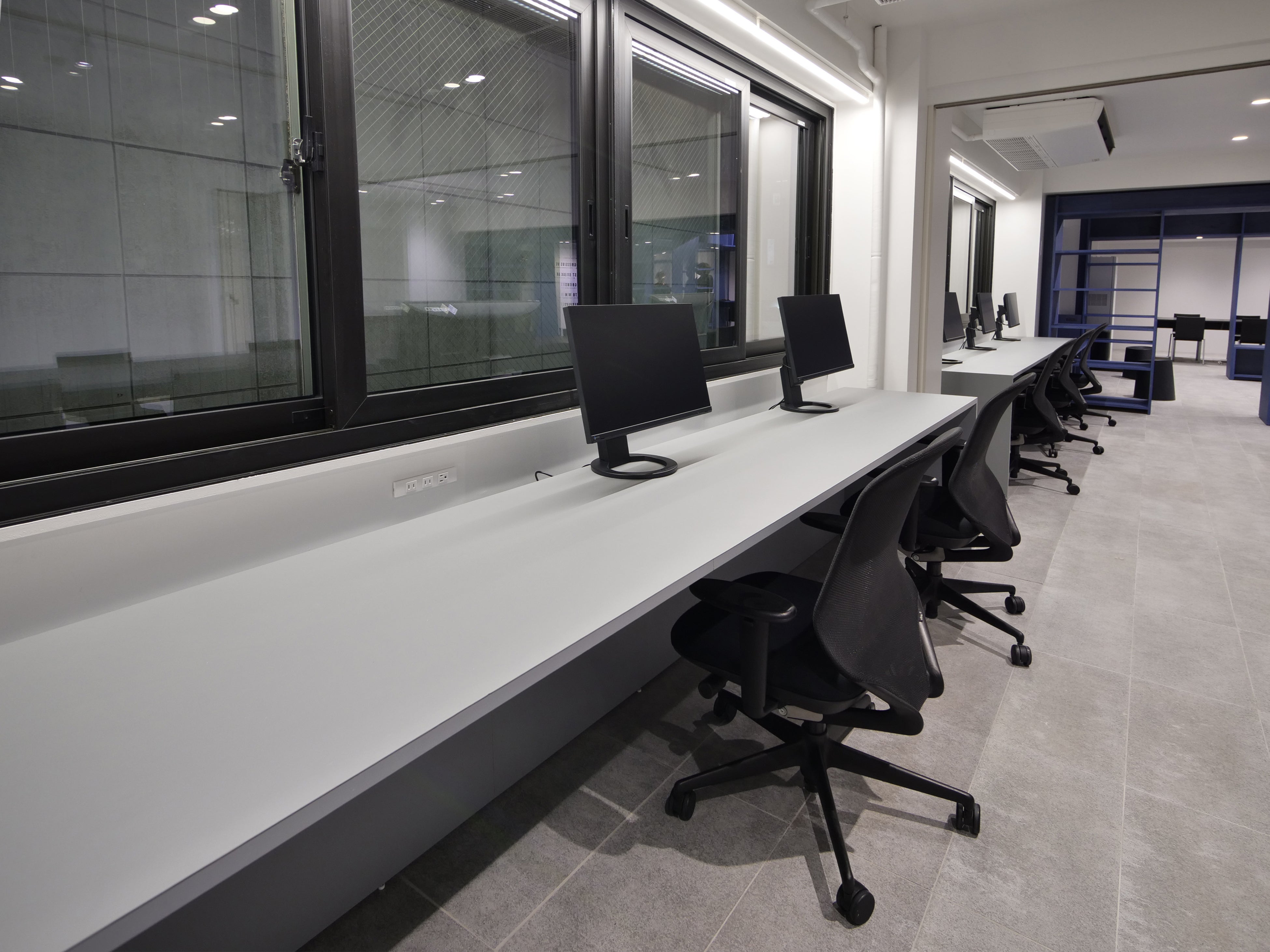 暮らしや働く空間の専門家であるパナソニック株式会社の「くらし・空間コンセプト研究所」の協力を得て、エビデンスに基づく感染症対策を導入。同時滞在者約30人を想定した換気量計算を行い、窓開け換気から、自動的に機械での換気を行う「第1種換気設備」を導入しています。また、デスクスペースには抗ウイルス効果がある天然由来素材のリノリウムを使用。各スペースの座席間の距離は1m以上に設定しています。