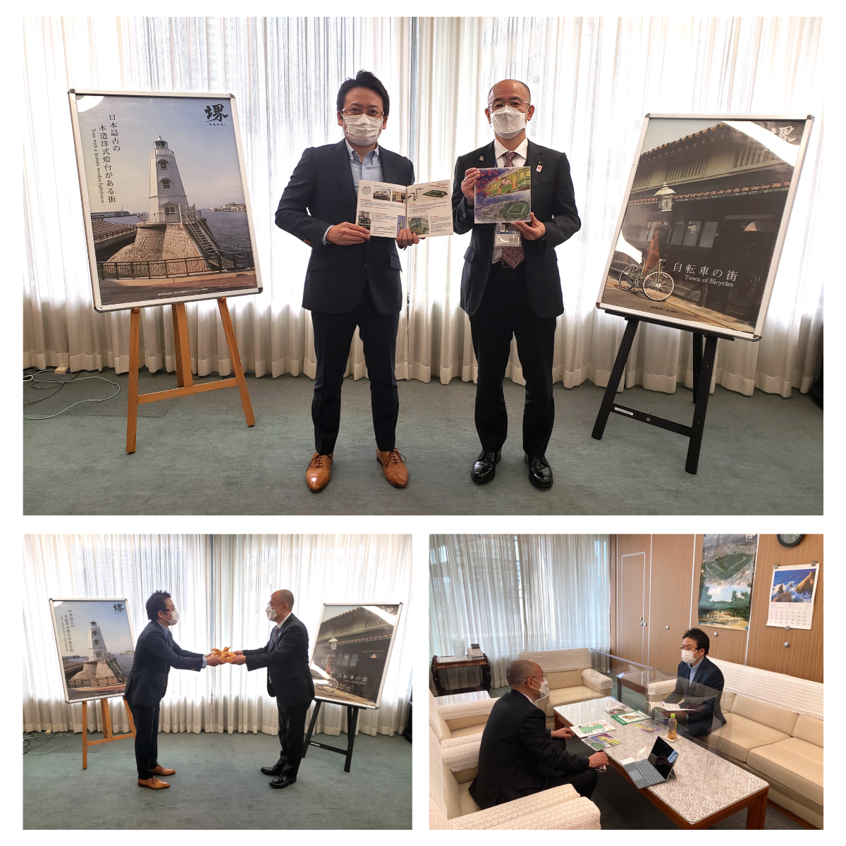 出版に先立ち、製本した絵本を堺市 東京事務所 坂口哲 所長に贈呈いたしました。