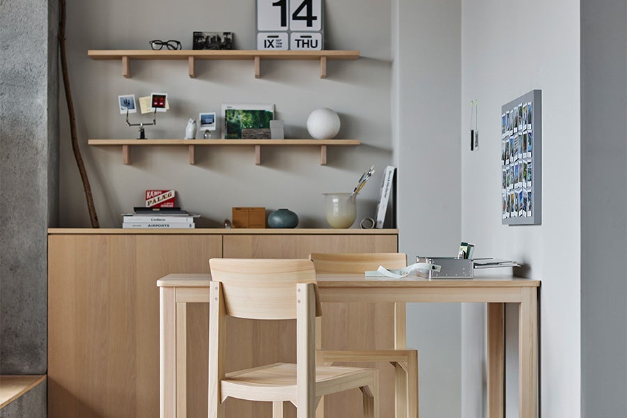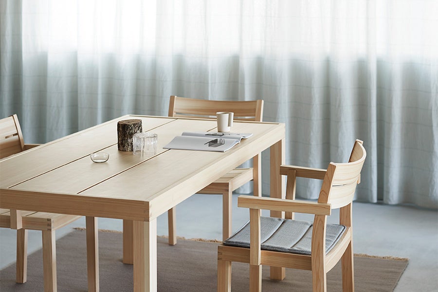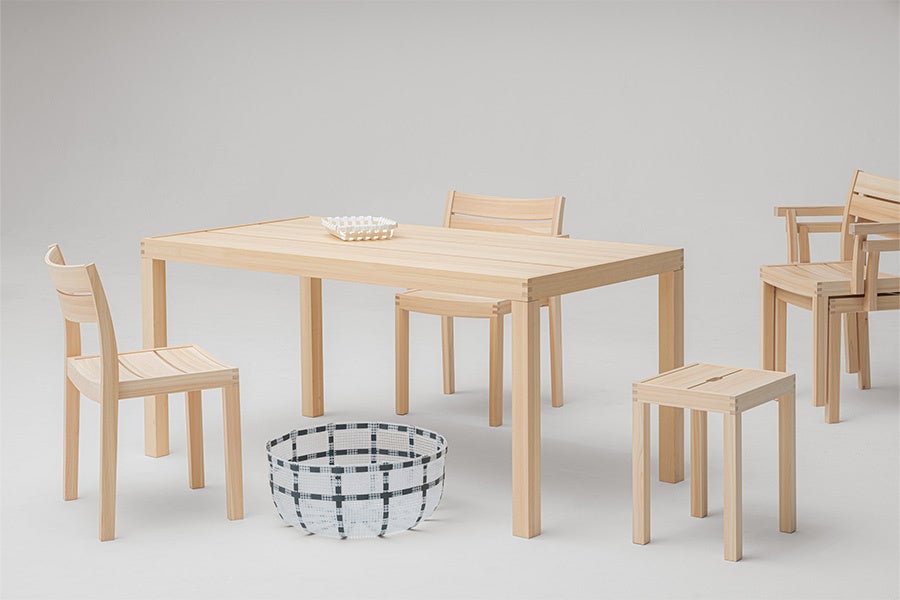 シンプルかつアイコニックな表情を纏ったノックダウン式のダイニングテーブル。軽やかで親しみやすいフォルムが特徴的です。針葉樹ならではの柔らかな表情は、空間を温かい印象にします。3サイズ展開のためデスクやダイニングとしてだけでなくオフィスシーンにもぴったりです。