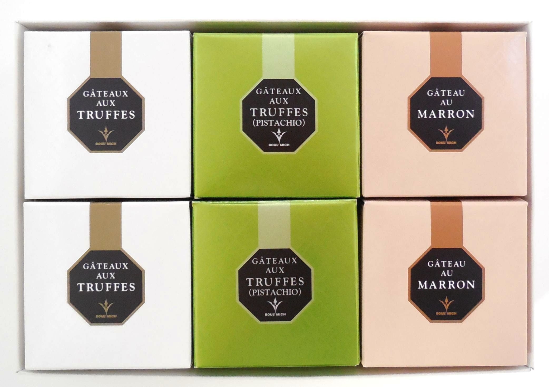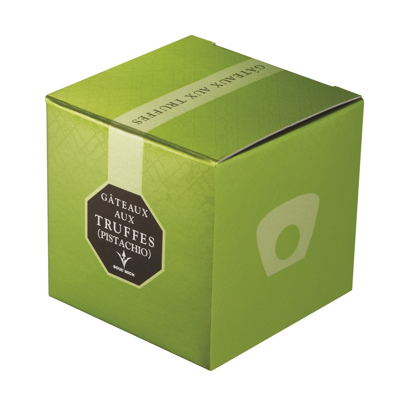 しっとり焼き上げたピスタチオ生地に、刻んだピスタチオでアクセントをつけ、まるごと一粒トリュフチョコレートを閉じ込めました。隠し味にキルシュワッサー(さくらんぼのお酒)を加えています。