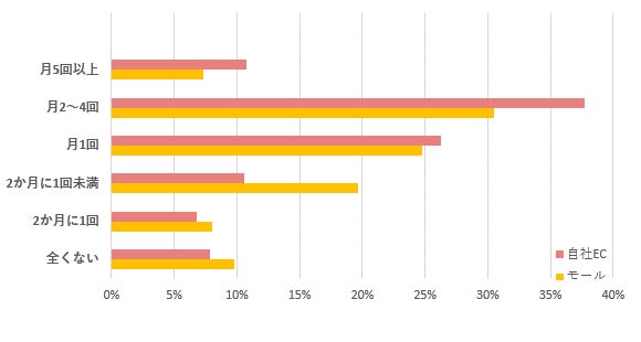・月2回以上購入するユーザーは、モール部門よりも自社EC部門の方が10%以上上回る