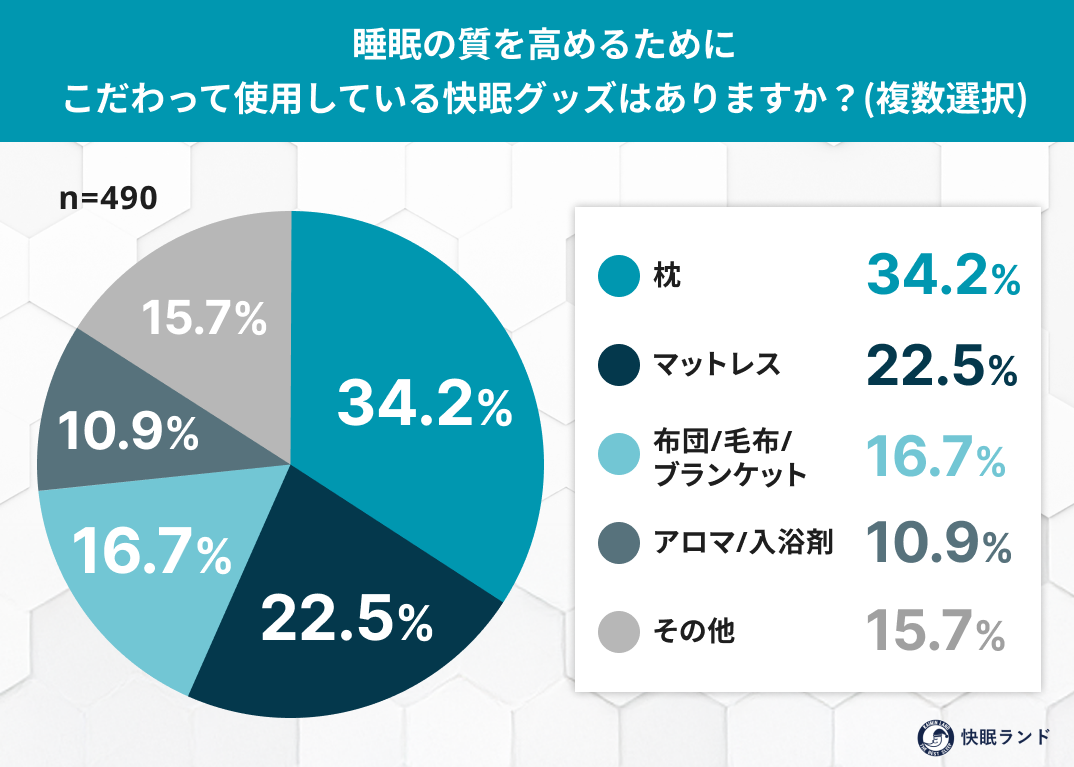 ・睡眠の質を高めるためにこだわって使っているアイテムも「枕」(34.2%)がトップ