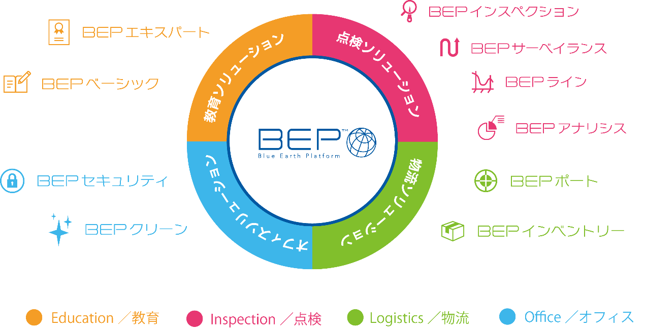ブルーイノベーションは、このBEPを軸に「教育」「点検」「物流」「オフィス」の4つのソリューション分野で事業を展開しており、各分野の主要な業務や用途の自動化に必要なBEPの機能やデバイスをあらかじめ選り出し、最適化した「BEPパッケージ」を開発・提供し、業務へのドローンやロボットの導入、自動化・DX化などを円滑に支援しています。