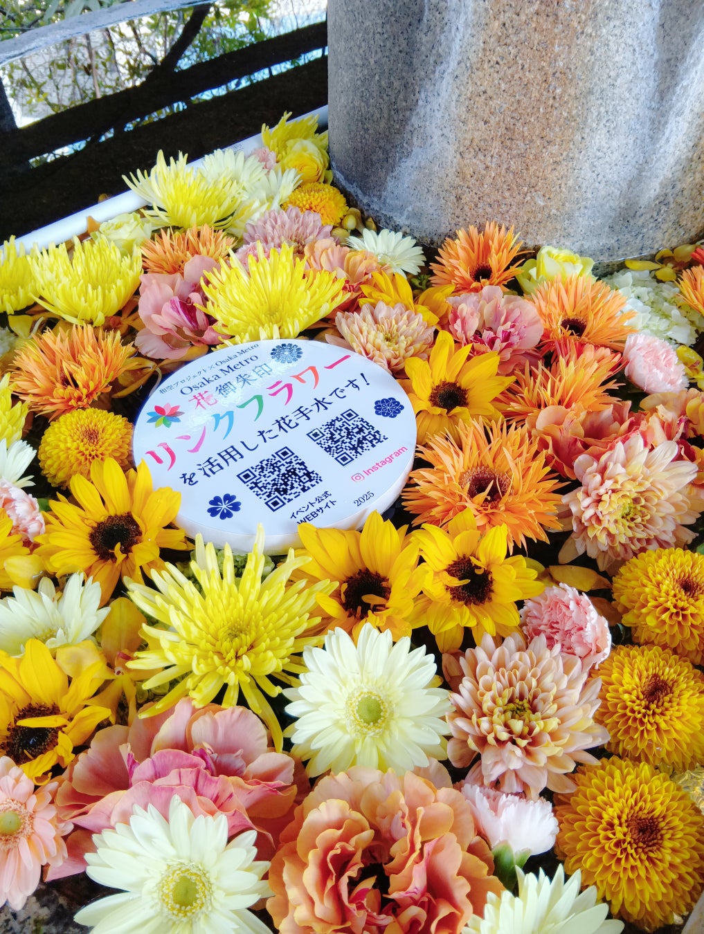 同イベントは、Osaka Metroと同社が共同で3月21日(金)から開催の「Osaka Metroで行く 六十六花御朱印巡り」の一環。「奉納 花手水」は同イベントの中で、全国にフラワーショップや営業拠点を持つ日比谷花壇グループの共同企画として実施されるものです。