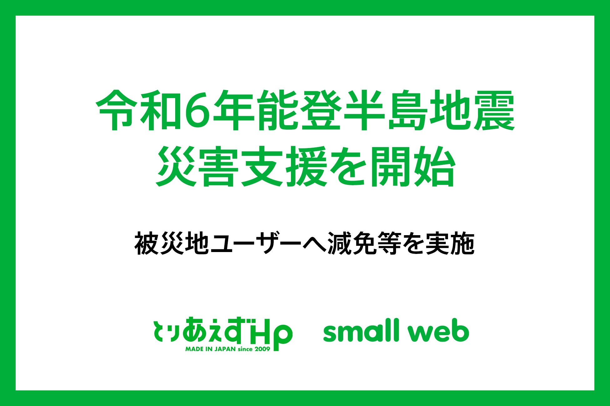 「とりあえずHP」令和6年能登半島地震 災害支援を開始。ユーザーへ減免等を実施
