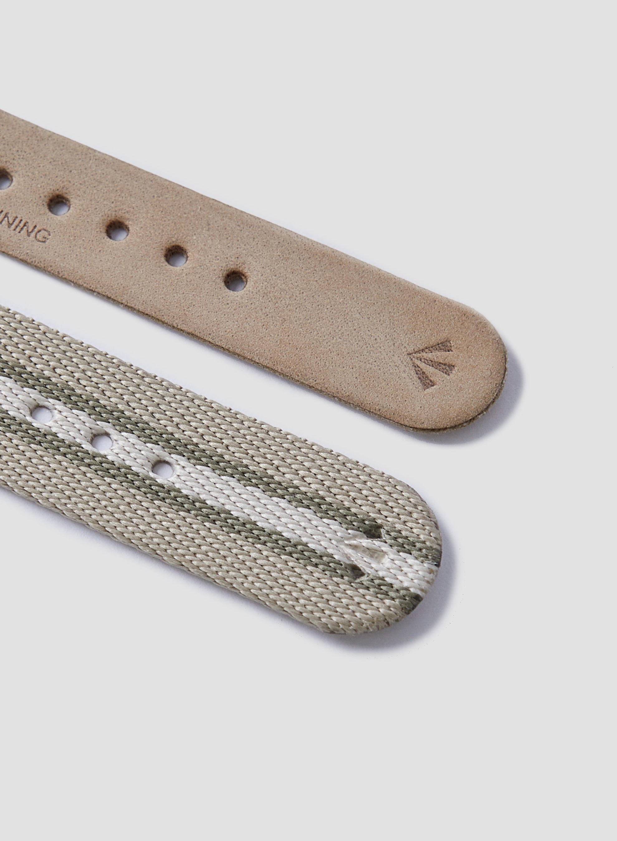 風防:ドーム型ミネラルガラス ストラップ:幅18㎜、ファブリック(化繊とベンタイルの2種、尾錠はいずれもステンレススチール製)