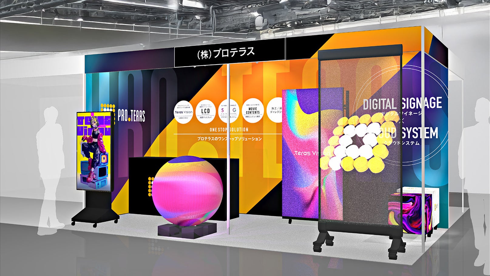 LEDビジョン、液晶ディスプレイ、SiG(クラウド型CMSサイネージ配信ソフト)などプロテラスが提供するデジタルサイネージの技術を体感していただけます。