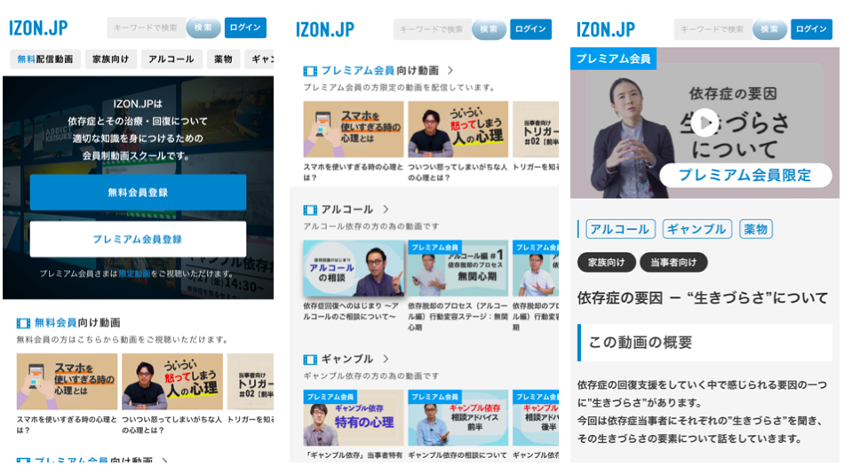 ワンネス財団が依存症とその治療・回復について適切な知識を身につけるためのオンライン型の会員制動画スクール『IZON.JP』をオープン。