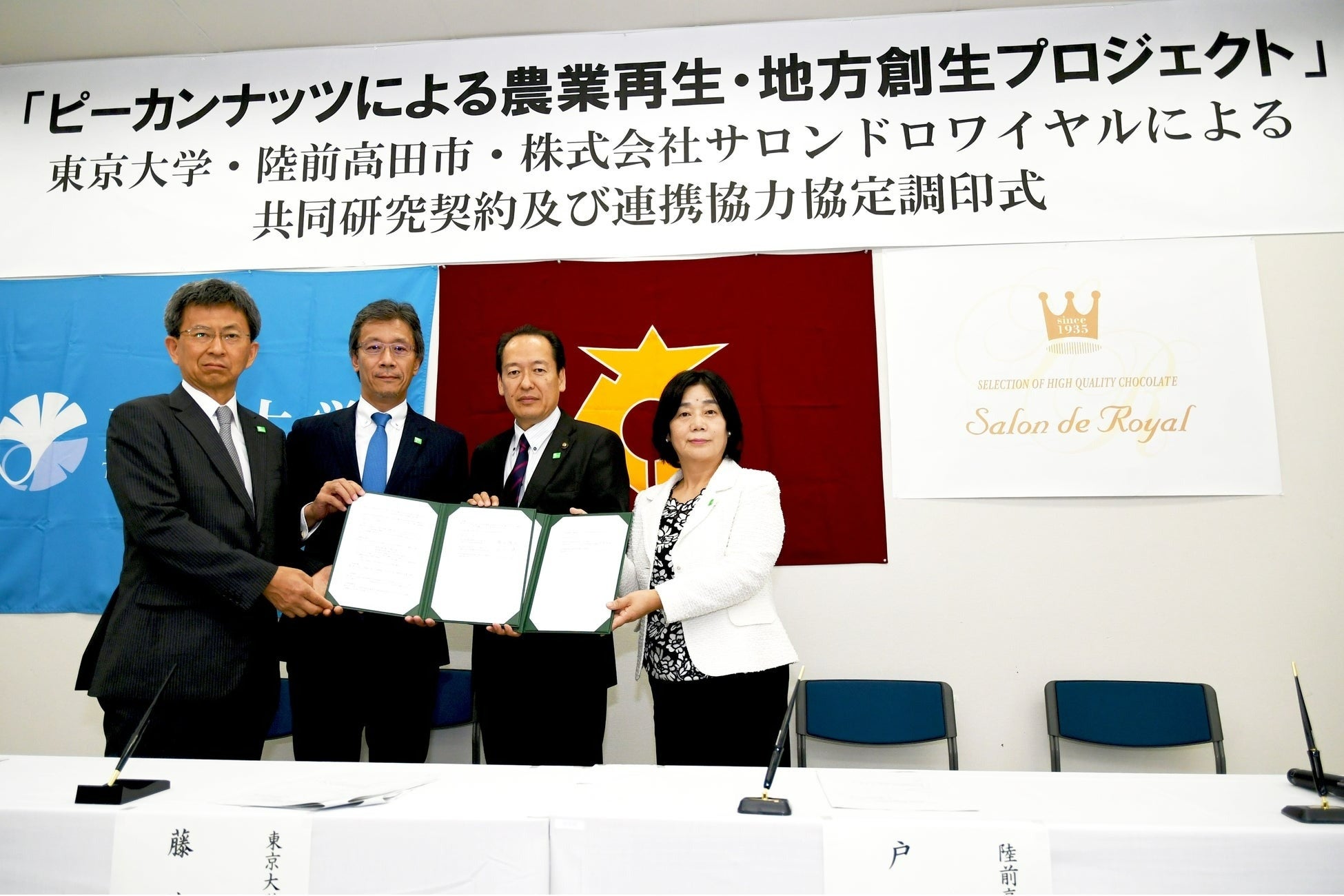 株式会社サロンドロワイヤルとゴールデンピーカン社は、震災後の震災後の地域再生や雇用創出を目指し、陸前高田市や東京大学と協力しながら、国産ピーカンナッツの普及と産業化を推進しています。
